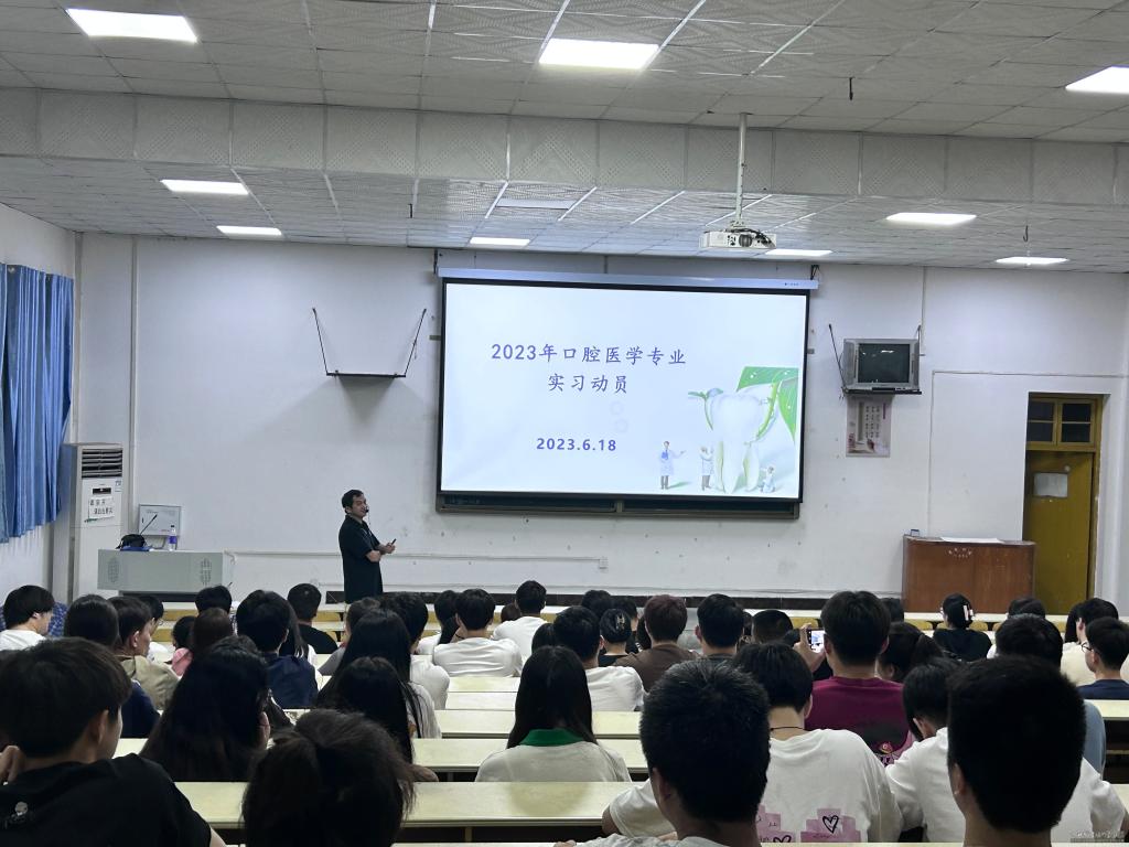 实习动员与教育活动由口腔临床教研室几位骨干教师共同完成,动员会上,老师们一是强调实习的重要性,要求学生摆正实习心态、完成角色转变,通过临床实习,熟练掌握专业知识与技能;二是强调实习安全与实习纪律,希望实习同学们注意人身安全、财产安全、医疗安全,服从医院的安排,遵守医院的各项规定,严明实习纪律与教学医院的劳动纪律;三是要有长远的职业规划,将实习学习活动与毕业后口腔执业助理医师资格考试将结合,成为一名合格的高素质技能型人才。