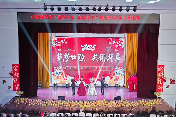 时光展新卷,岁月绘新篇。1月1日晚19:00,best365英国在线体育官网“筑梦口腔 共谱华章”2025年元旦晚会在西区文昌大礼堂隆重举行。孝感市中心医院口腔中心主任黄卫东、孝感市口腔医院副院长余巍、院务委员董抗、医务科科长刘润芝、湖北盈瑞齿科总经理郑宝舟、新华街道渡口社区主任郭强、盛都幼儿园执行园长汪群、学校相关职能部门、各教学院领导莅临晚会现场。学院班子成员、全体师生共同观看演出。