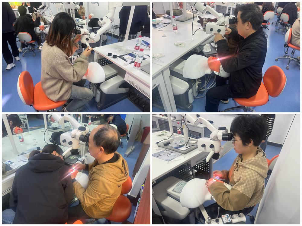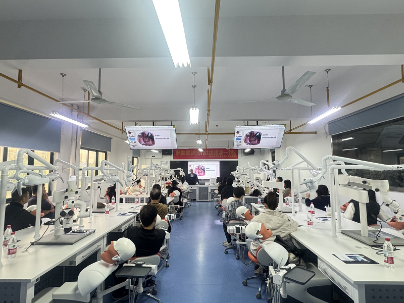 培训当天,学院专任教师以“学员+观察员”的双重身份深度参与培训全程。上午的理论授课环节,教师们与来自全国各省市的口腔医师一同聆听行业专家讲解“显微镜下根管治疗的全新思维”、“现代根管治疗最前沿技术”等,并实时记录课程设计逻辑与教学方法;下午的实操培训阶段,教师们围绕“显微镜下的根管扩大技术”“活髓保存技术临床”“MTA充填技术”等核心技能。