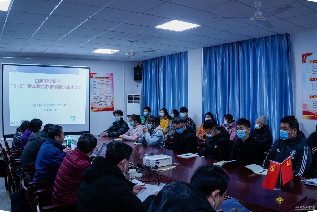 口腔医学专业“3+2”专本联合办学项目是2017年经省教育厅批准,由我校与荆楚理工学院共同举办的,每届招生70名,至今已招生四届。为加强对口腔医学专业“3+2”专本联合办学项目管理,提高人才培养质量,best365英国在线体育官网每学期均召开项目学生座谈会,会议中肯定取得的成绩,分析存在的问题,现场解答同学们疑惑的问题,这一工作模式深受学生们的欢迎。
