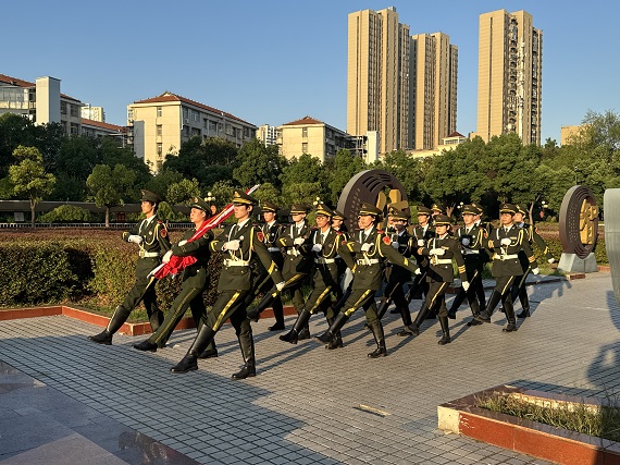7时整,升国旗仪式正式开始。国旗护卫队迈着整齐划一、铿锵有力的步伐护送五星红旗走向升旗台。伴随着激昂的《义勇军进行曲》,全体师生庄严肃立、齐唱国歌,注视着五星红旗冉冉升起。