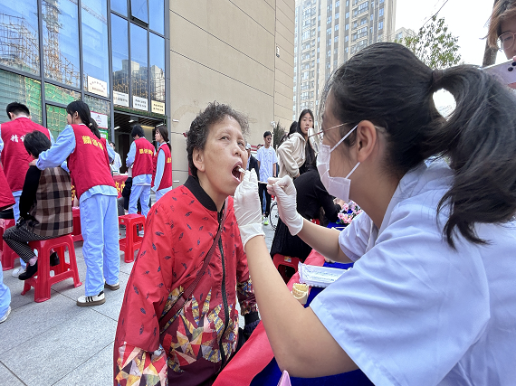 金秋送爽,丹桂飘香,在重阳节这个尊老敬老的传统节日里,best365英国在线体育官网口腔志愿服务队带着满满的温情和关爱,走进了文昌阁社区,为居民们送上了一场别开生面的健康公益活动。10月11日上午,志愿者们早早地来到了社区广场,搭起了义诊摊位,准备为居民们提供全方位的便民服务。其中,口腔义诊成为了本次活动的重头戏,吸引了众多居民前来咨询和检查。