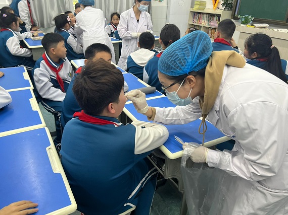 现场,爱心口腔服务队师生有序为小学生检查口腔,耐心、细致地查看每一颗牙齿,认真记录龋齿、换牙等情况。检查过程中,孩子们积极配合,对自己的口腔健康充满好奇。
