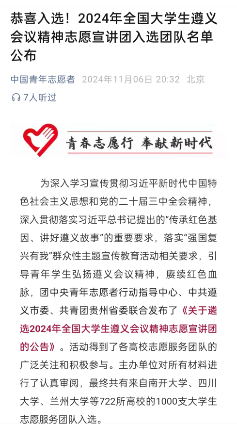 “遵”道“毅”行志愿宣讲团入选2024年 [2024/11/13]