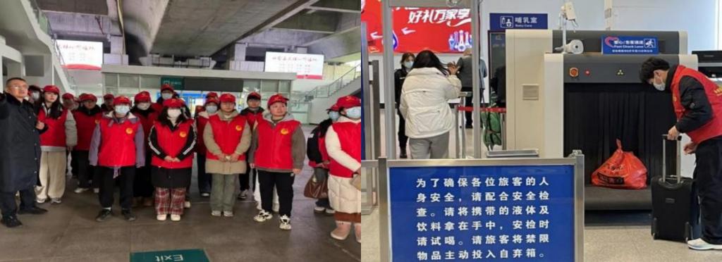 在孝感东站,李昊同学参与了协助安检、售票引导、车次咨询及引导旅客乘车等服务。他在孝感东站担任志愿者期间,不仅协助旅客快速进站,引导他们前往正确的检票口,还为特殊旅客提供贴心帮助。每一次旅客的微笑与感谢,都让他满心欢喜。