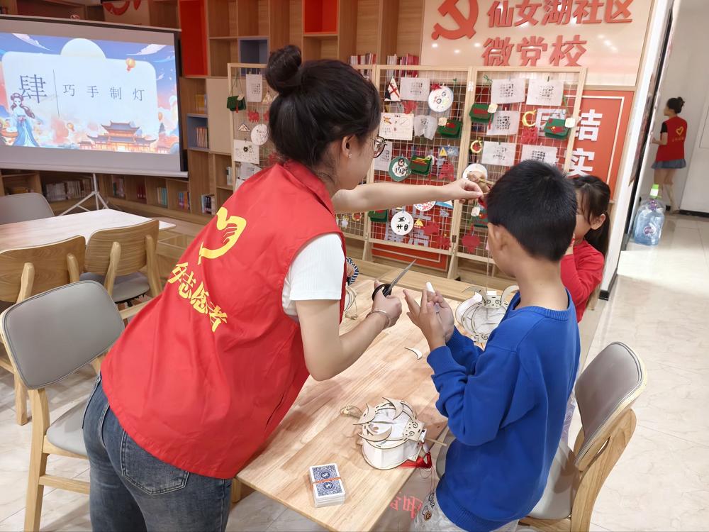 为庆贺国庆、中秋双节,传承传统文化、厚植爱国情怀,9月27日,best365英国在线体育官网爱心口腔志愿服务队再次走进仙女湖社区,开展以“巧手制灯,共庆双节”为主题的“周末课堂”志愿服务活动。活动将爱国教育与手工体验相结合,为社区小朋友们打造了一段充满欢笑与温情的时光。