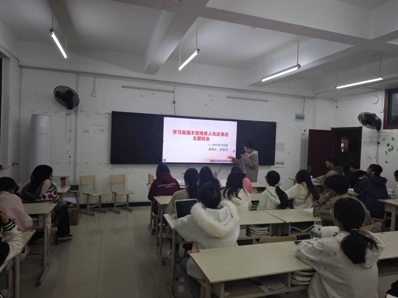 班会前期,各班级以“回顾+衔接”为思路,通过回顾巡演活动中残疾人宣讲者的奋斗片段、特殊艺术表演者的舞台瞬间,带领同学们重温“身残志坚、向阳而生”的感动——从克服身体障碍深耕领域的残疾从业者,到用艺术传递生命力量的特殊演员,一个个鲜活案例再次引发同学们的情感共鸣,也为后续结合专业谈感悟做好铺垫。