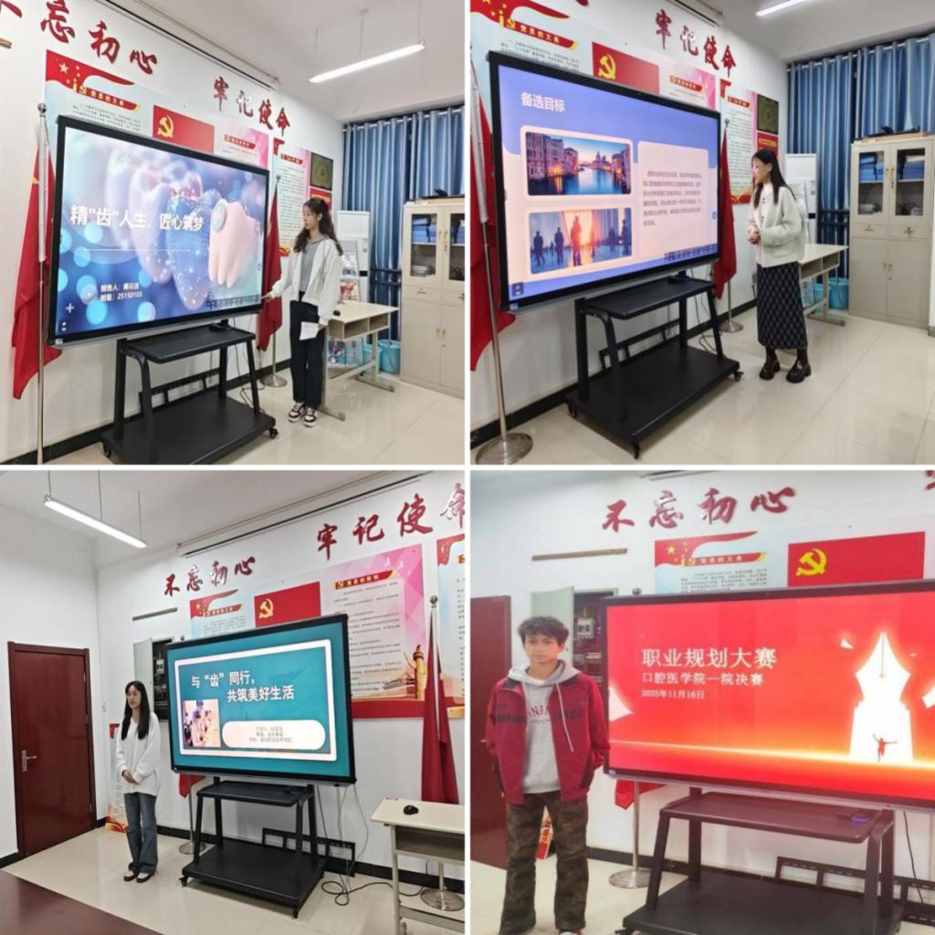 在比赛现场,选手们进行了系统而全面的职业规划展示。其内容层层递进,从清晰的自我认知出发,结合对行业趋势与人才需求的深入分析,进而确立了切实可行的短期目标与长远愿景,并制定了详尽的实施与调整方案。尤为突出的是,所有规划均紧密围绕口腔医学的专业特点展开,选手们成功地将个人兴趣特长与社会医疗需求相融合,清晰地规划出从口腔全科医生到正畸专科医生等多元发展路径。这充分展现了他们不仅具备扎实的专业素养,更拥有将个人成长融入学科发展的职业视野,以及对未来职业道路的深刻思考和主动谋划。