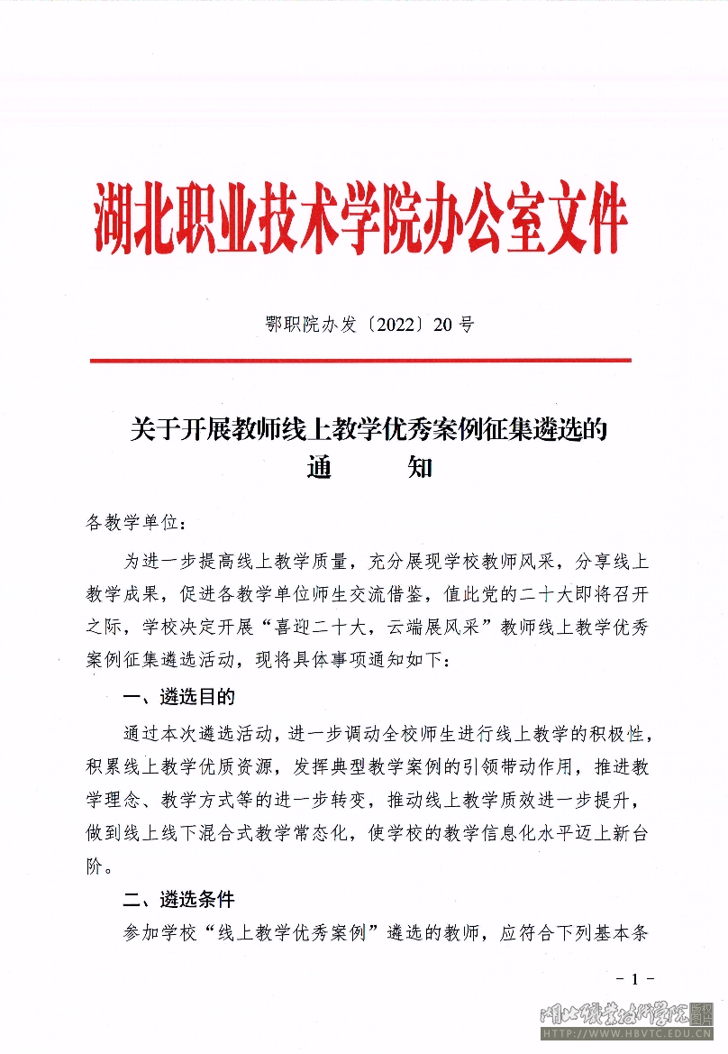 关于开展教师线上教学优秀案例征集遴选的通知