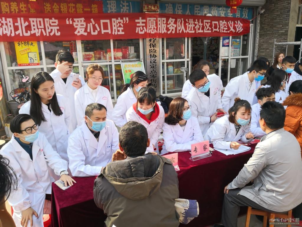 为进一步发扬雷锋精神,弘扬社会正气,服务社区百姓,在全国第55个学雷锋活动月到来之际,由best365英国在线体育官网党总支副书记高想清、专业带头人和教工党支部书记谢宏新、学工党支部书记李周胜、团总支书记周晋等的5名党员教工和20余名学生预备党员及入党积极分子组成的“爱心口腔”志愿服务队走进了孝南区南大新华社区,为社区百姓进行了口腔健康义诊活动。