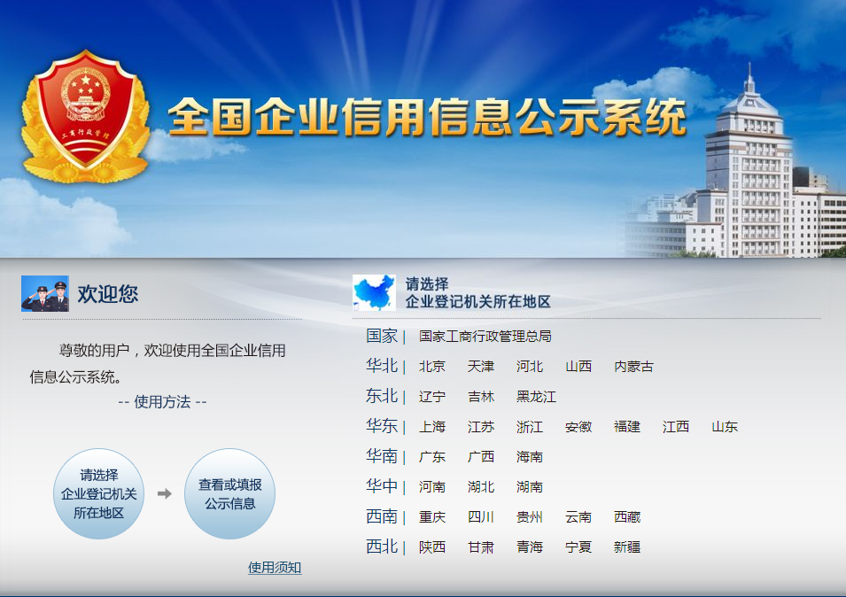 《全国企业信用信息公示系统》工商注册号查询网站: