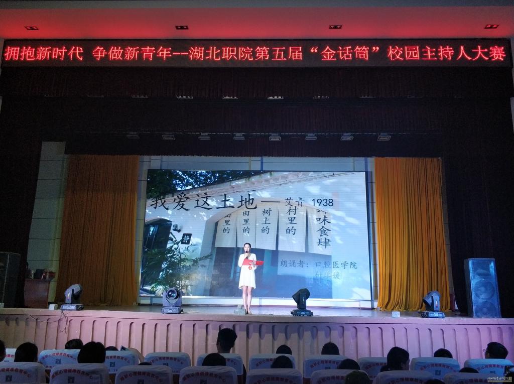 决赛分为两个环节,第一个环节为VCR展示和美文朗诵,第二个环节为模拟主持。朗诵环节中,付琪媛以一首情深意切的《我爱这土地》,掀起观众感情狂澜。徐峥朗诵的《大漠敦煌》,豪壮大气,仿佛让人置身于屹立不倒的敦煌身前。模拟主持环节,付琪媛模拟主持“孝感口腔专委会成立大会”,以成熟稳重,落落大方的表现获得评委一致好评。徐峥模拟主持的“峥说真话”诙谐幽默,现场氛围浓烈。