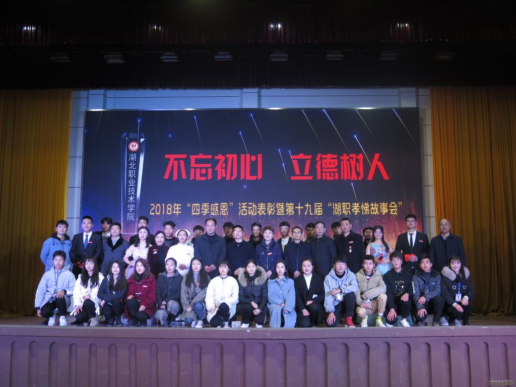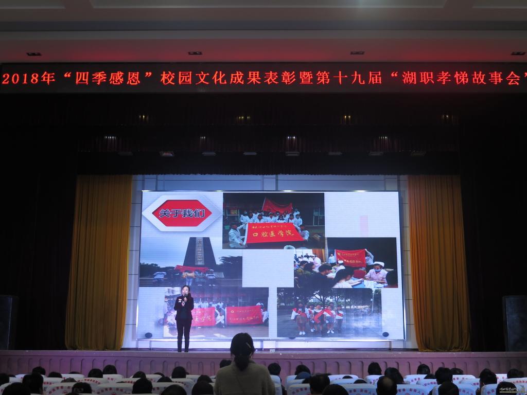 2018年12月13日晚七点,best365英国在线体育官网第三届“四季感恩”校园文化成果表彰大会暨第十九届“湖职孝悌故事会”宣讲会在西区大礼堂隆重召开。学校党委书记张国雄、校长朱虹以及best365英国在线体育官网党总支书记、院长廖建宏,副书记高想清和来自各职能处室的领导参加了表彰大会,best365英国在线体育官网教学办学工办相关领导、老师及学生代表也受邀参加了此次表彰大会。