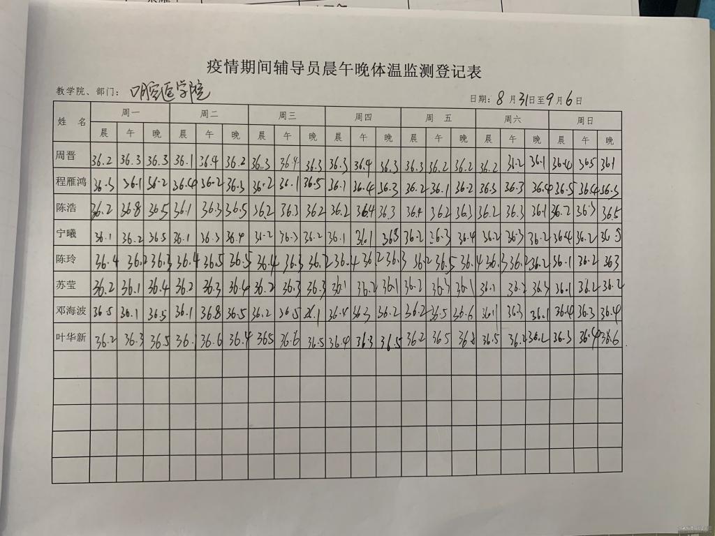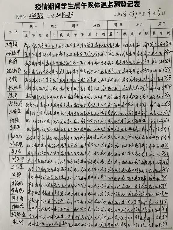 疫情期间学生晨午晚体温监测登记表