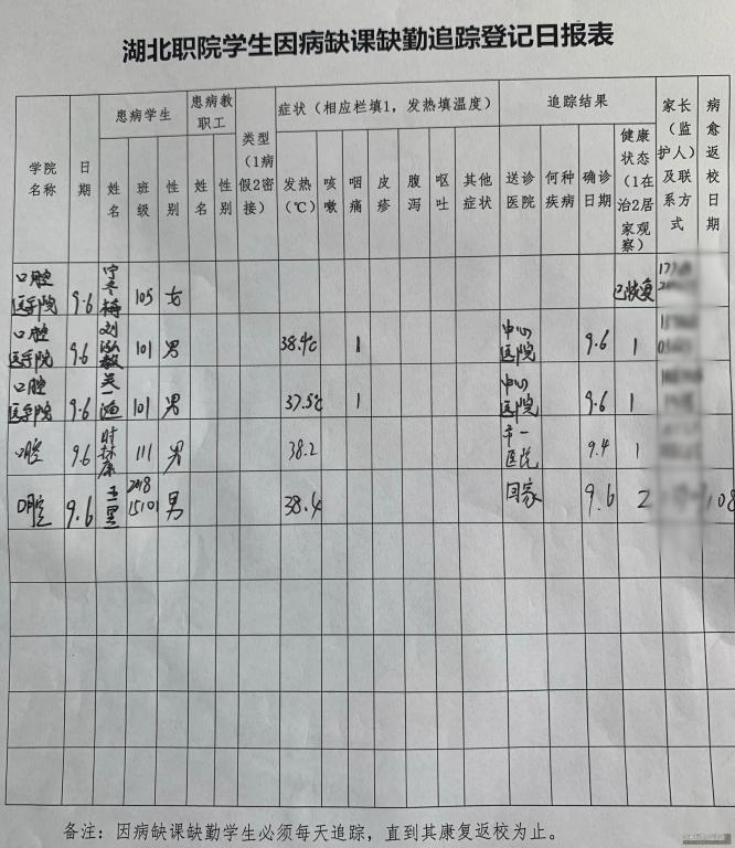 学生因病缺课缺勤追踪登记日报表