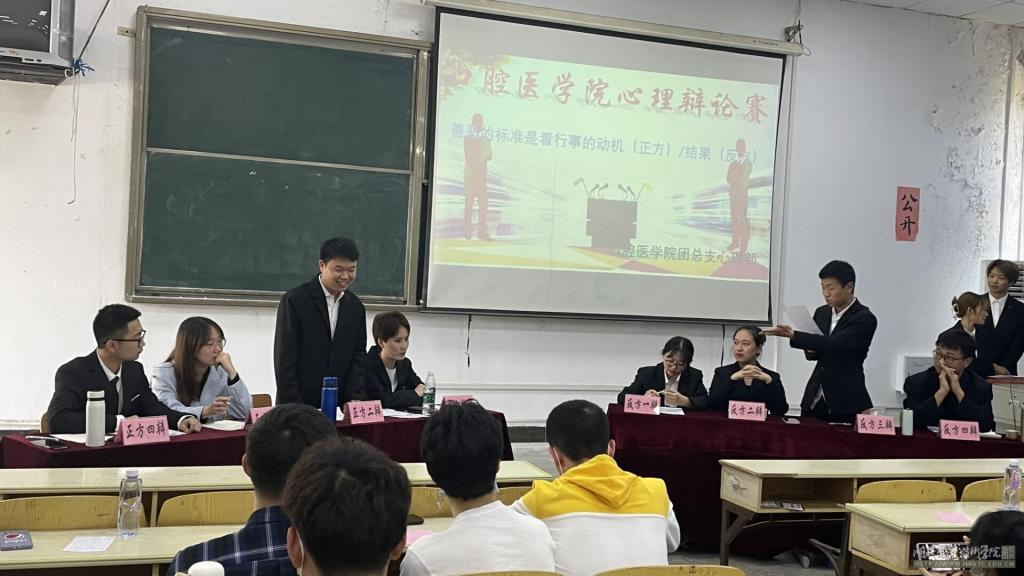 4月29日,best365英国在线体育官网团总支心理部举办的以“善恶的标准是看行事的动机/结果”为主题的辩论赛在东区阶梯教室201教室如期举行。参加本次辩论赛的有best365英国在线体育官网党总支副书记周建平,主持人孙磊、尹璐,正辩和反辩各四人,以及上百名学生前来观赛。