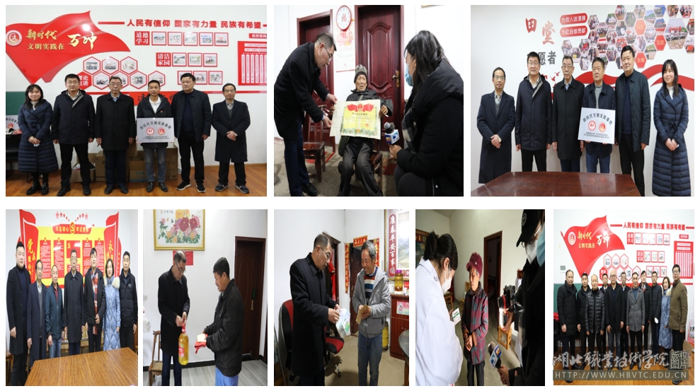 (本网讯陈灏 汪向东 余仲铭 彭裕刚 夏育斌)走进农家服务百姓情系乡村,文明实践共筑思想文化阵地。1月12日,我校师生志愿服务队来到孝昌县万冲村、田堂村和双峰山剥岸村,宣传党的二十大精神,开展送文化与健康活动,开展“敲门行动”,为老人们送防疫健康包、慰问金等,共商乡村发展新路,受到群众的热烈欢迎。