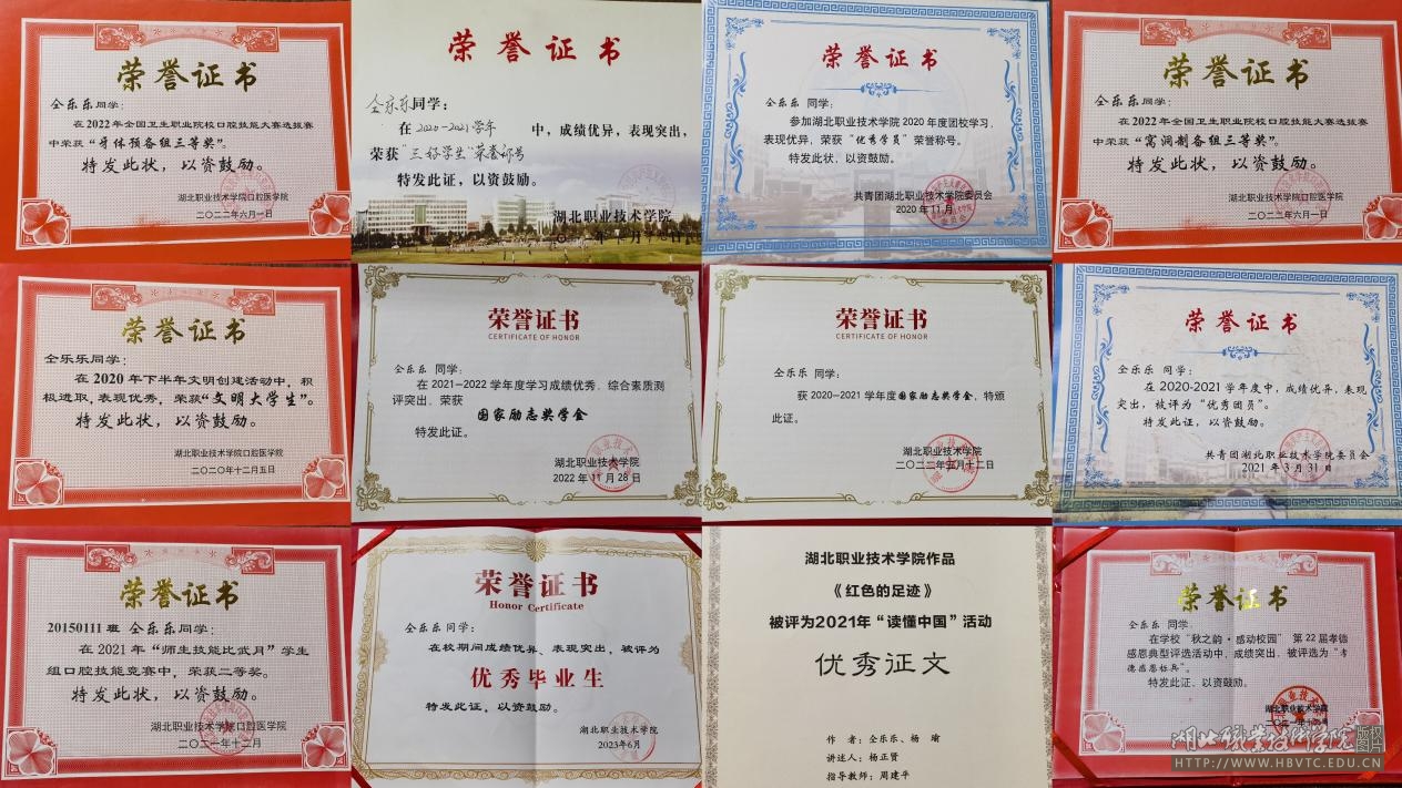 从刚进学校的一只小雏鸟成长为待展翅高飞的雄鹰,我从内而外的提升了自己。在思想上我始终要求进步,在预备党员期间,我主动投身医院疫情防控各项工作。经过党组织的考察,最终成为了一名正式的中国共产党党员。我坚持德智体美劳全面发展,第一学期期末考试考取年级第一名次,连续两年成绩居班级前三,曾多次获三好学生、优秀团员、校级甲等奖学金、国家励志奖学金及优秀毕业生等荣誉。在2022年全国卫生职业院校口腔技能大赛选拔赛中获三等奖;于2021年被孝感市评为“最美孝德青少年”;文章被湖北省关工委评为2021“读懂中国”活动优秀征文等。2023年,我通过了专升本考试考入湖北科技学院。