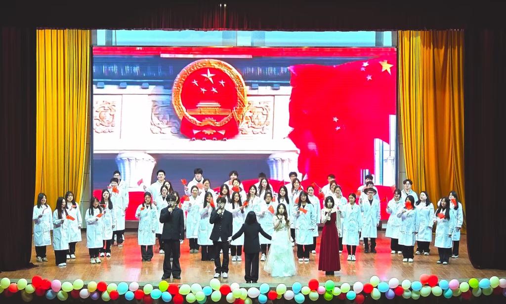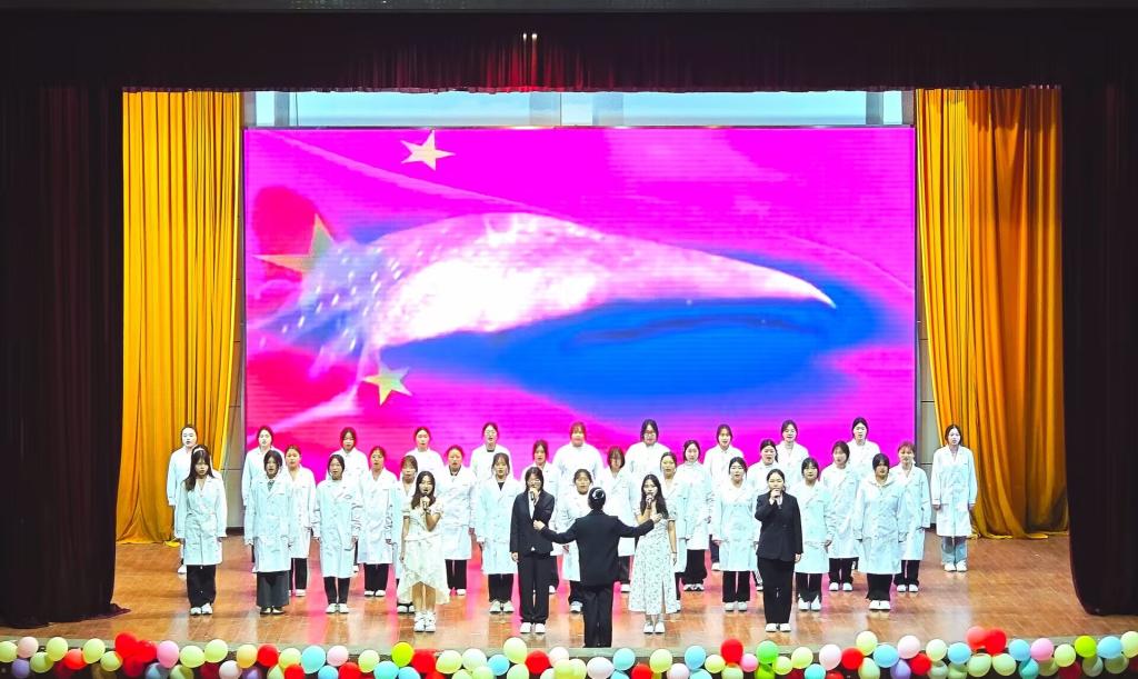 比赛中,各参赛队伍各展风采。"五星红旗迎风飘扬,胜利歌声多么嘹亮...随着24级口腔7班的深情开唱,红歌赛正式拉开帷幕。11个班级依次登场,《不忘初心》的大气磅礴、《少年中国说》的铿锵有力、《我爱你中国》的温暖抒情,在师生们的创新演绎下焕发出新的生命力。24级口腔4班的《紫荆花盛开》,演员们用生动的肢体语言赢得现场阵阵掌声;24级口腔9班演绎《不忘初心》,纯净和声传递青春力量。整个比赛现场,歌声、掌声、欢呼声交织在一起,构成了一曲充满激情与力量的乐章,将对红色精神的传承与敬意展现得淋漓尽致。