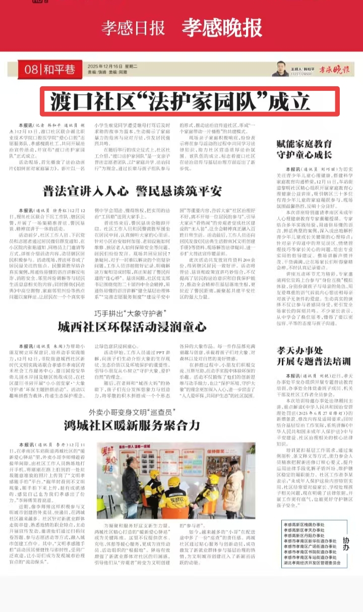 【孝感日报】渡口社区“法护家园队”成 [2025/12/16]